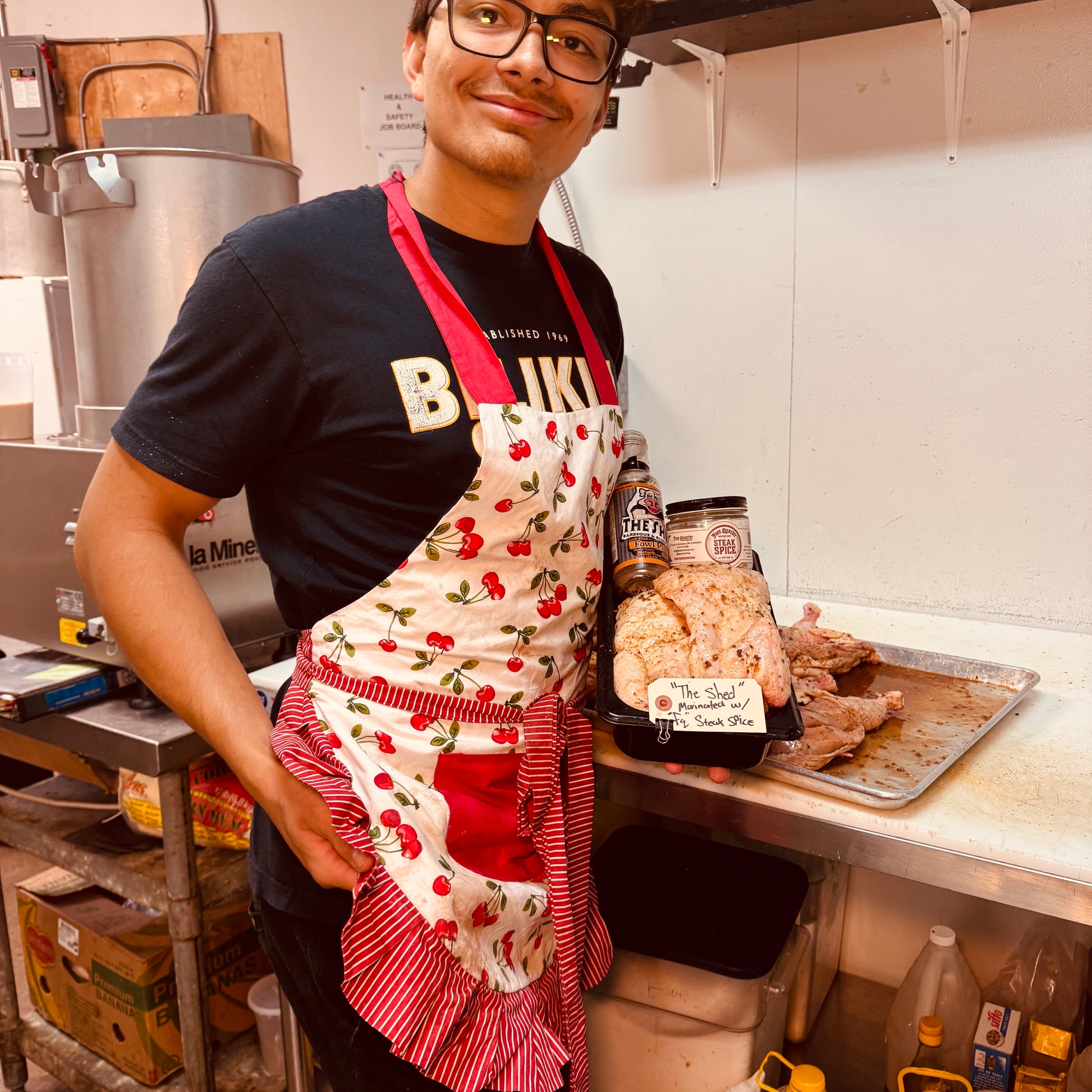 24 hr brined (salt and sugar), can be rubbed with anything you want!